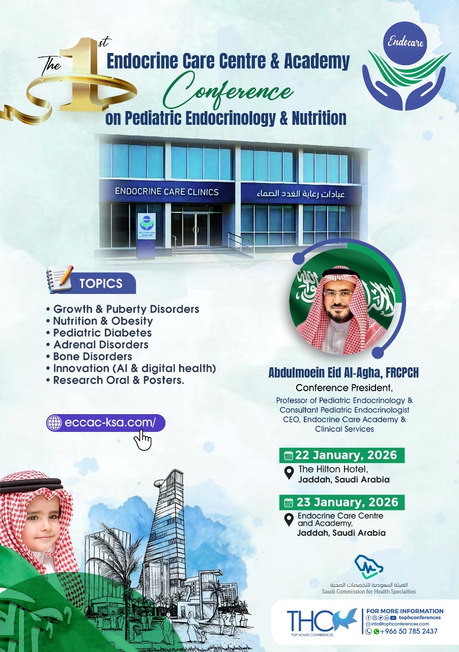 This conference provides a platform for interactive discussions and knowledge exchange on key topics including growth and puberty disorders, nutrition and obesity, pediatric diabetes, adrenal and bone disorders, as well as the integration of artificial intelligence and digital health in pediatric care. Participants will also have the opportunity to present research papers and posters, enhancing collaboration and fostering advancements in pediatric endocrinology.