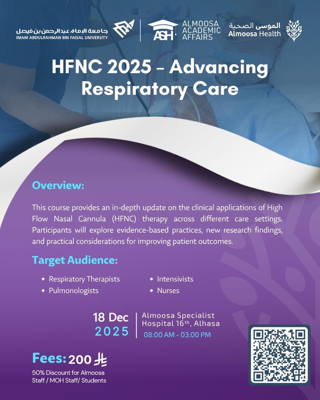 The event promises to bring together a multidisciplinary audience involved in respiratory care — including respiratory therapists, pulmonologists, critical-care staff, and nurses — to share experiences, discuss challenges, and update protocols. Participants will have the opportunity to engage with experts, learn about indications, contraindications, setup and monitoring parameters of HFNC, and discuss strategies for safe weaning and escalation when needed.