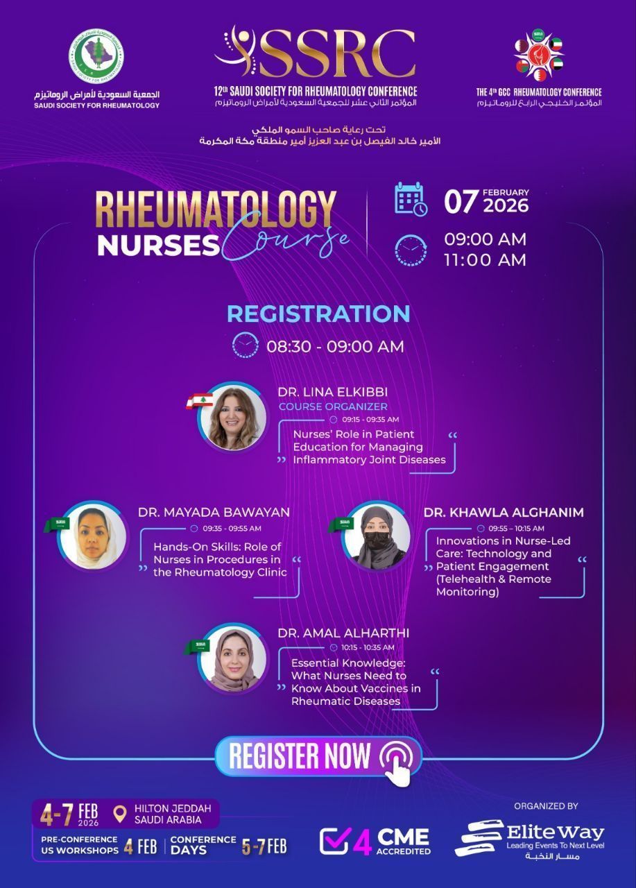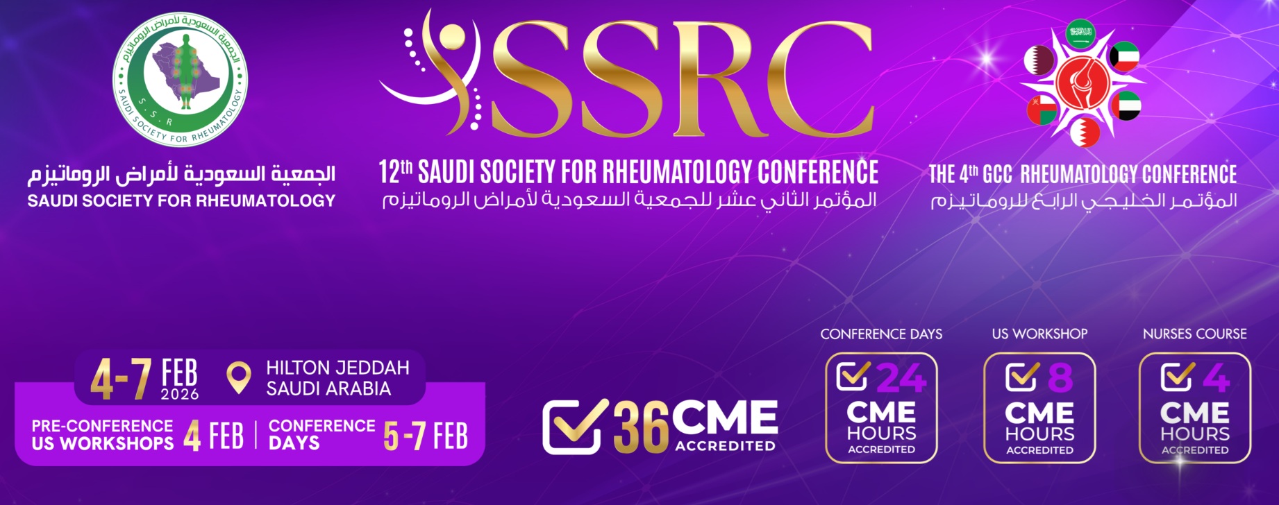 The 4th GCC Rheumatology Conference in conjunction with the 12th Saudi Society for Rheumatology Conference (SSRC 2026) will bring together leading experts, clinicians, and researchers in the field of rheumatology across the Gulf region. Held from 4–7 February 2026 at the Hilton Jeddah, Saudi Arabia, the conference will feature a diverse scientific program, hands-on workshops, expert lectures, and advanced clinical discussions on the latest diagnostic and therapeutic approaches in rheumatic diseases. The event provides a regional hub for knowledge exchange and the advancement of evidence-based practice in rheumatology.