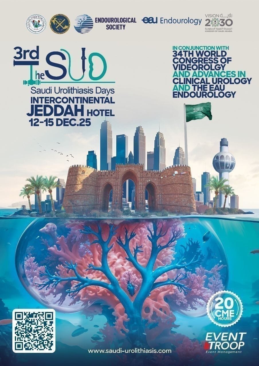 The 3rd Saudi Urolithiasis Days (SUD) is a major scientific gathering dedicated to the latest advancements in kidney stone disease, endourology, and minimally invasive urologic surgery. Held at the Intercontinental Hotel in Jeddah, this event brings together regional and international experts to discuss cutting-edge diagnostic techniques, innovative treatment modalities, and evolving technologies shaping the future of urology. Participants will gain access to lectures, hands-on insights, and comprehensive updates from leading specialists in the field.