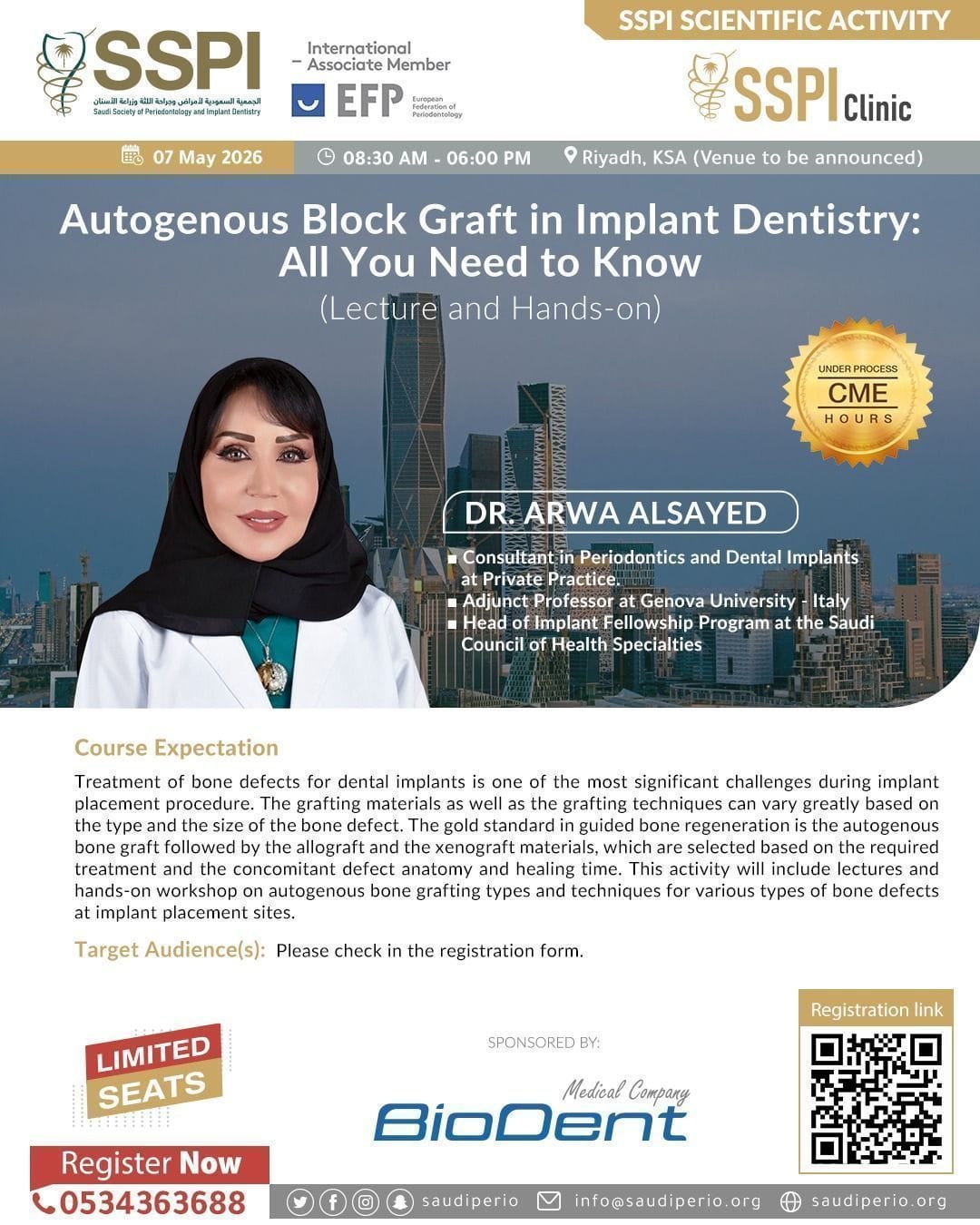 Treatment of bone defects for dental implants is one of the most significant challenges during implant placement procedure. The grafting materials as well as the grafting techniques can vary greatly based on the type and the size of the bone defect. The gold standard in guided bone regeneration is the autogenous bone graft followed by the allograft and the xenograft materials, which are selected based on the required treatment and the concomitant defect anatomy and healing time. This activity will include lectures and hands-on workshop on autogenous bone grafting types and techniques for various types of bone defects at implant placement sites.