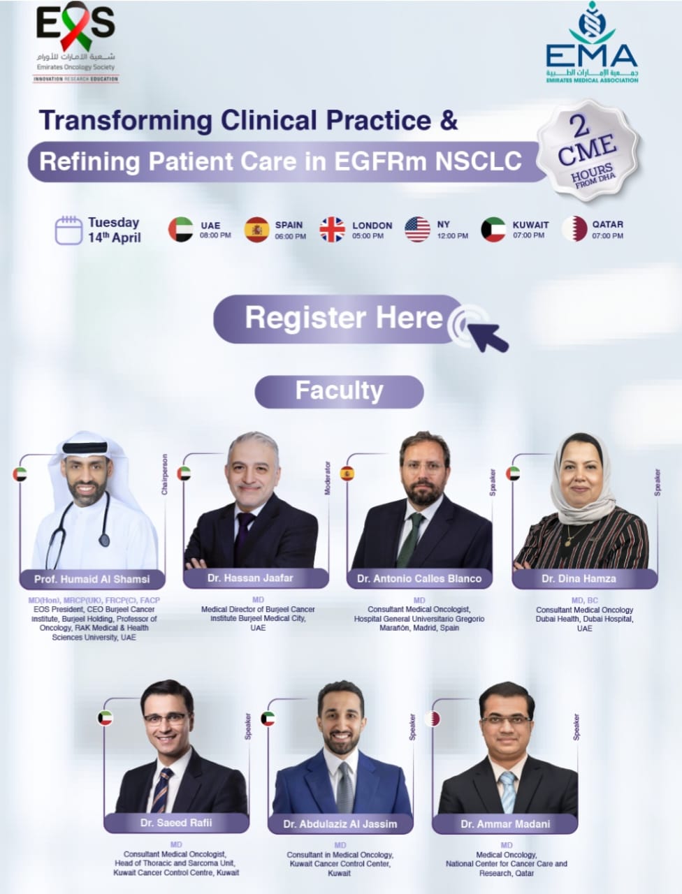 This insightful session will explore the evolving landscape of EGFRm NSCLC, including emerging standards in first-line treatment, strategies to overcome resistance beyond progression, and practical approaches to optimizing patient care and therapy management. The webinar will also feature real-world case discussions from both upfront and post-progression treatment settings.