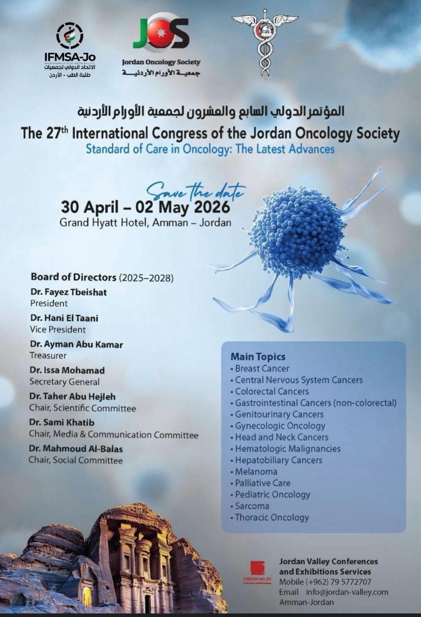 Be part of a leading regional oncology congress bringing together oncologists, haematologists, surgeons, radiologists, researchers, and allied health professionals from Jordan and the wider region.